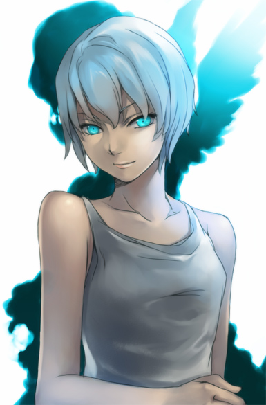 safi, nagi, kannagi, 00s, blue hair, blunt bangs, flat chest, hairband, long hair, purple eyes, solo