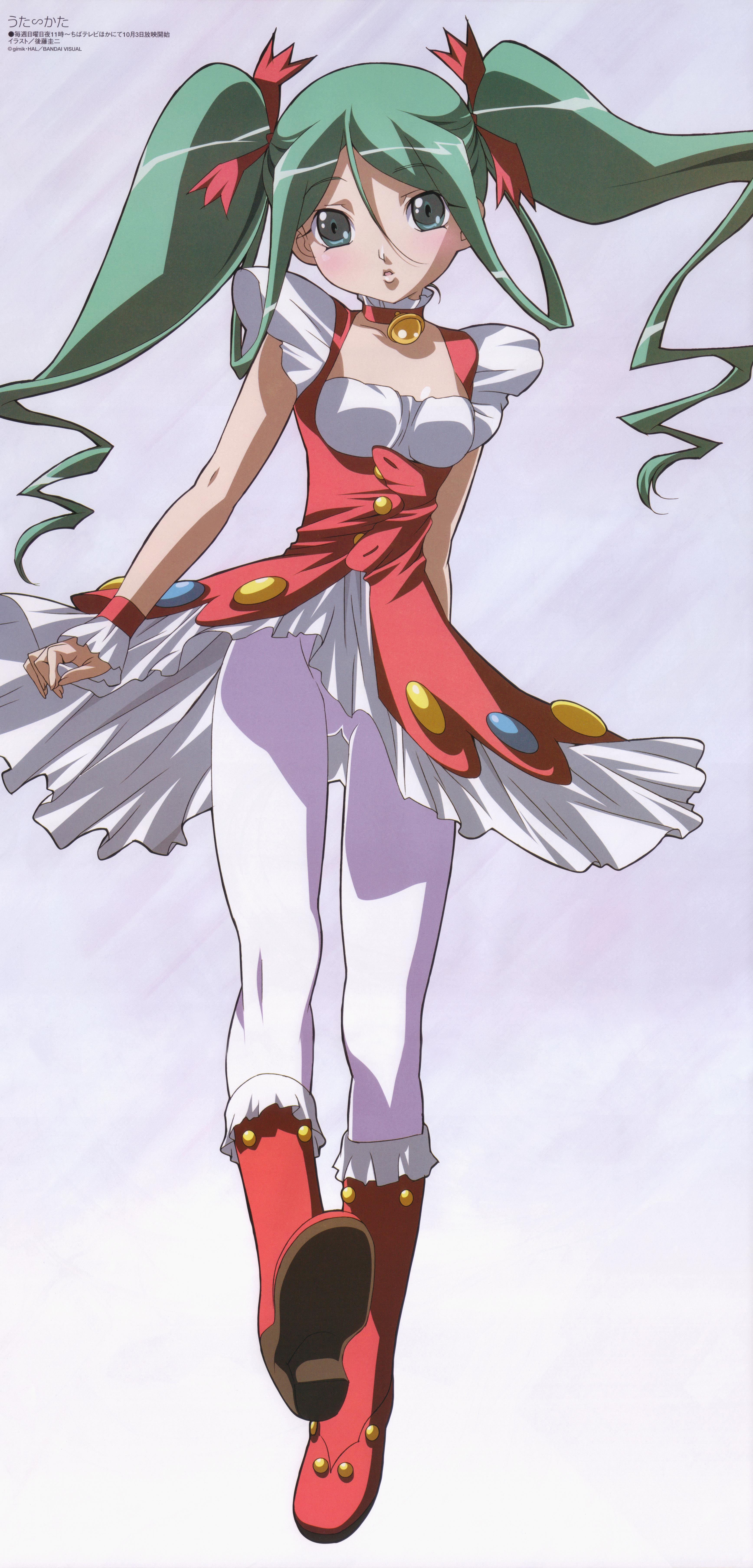 00s1girlbootsfemale focusgreen eyesgreen hairmatching hair/eyespantyhoseskirtsolotwintailsupskirtwhite pantyhose