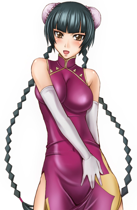 nanatsuki sousuke, original, highres, 1girl, android, animal ears, black hair, breasts, cat ears, cat girl, cat tail, claw pose, colored skin, covered navel, grey eyes, joints, large breasts, leotard, looking at viewer, mechanical ears, mechanical tail, multicolored hair, purple hair, robot joints, solo, standing, strapless, strapless leotard, tail, two-tone hair, white background, white skin