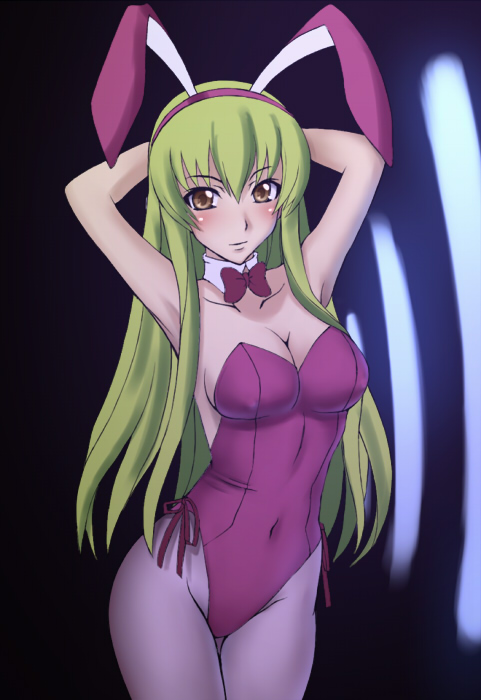00s1girlanimal earsarm behind headarmpitsblushbowbowtiebreastscleavagecovered erect nipplescowboy shotdetached collarfake animal earsfemale focusgreen hairlong hairnavelpantyhoseplayboy bunnyrabbit earssmilesoloyellow eyes