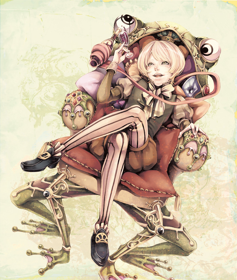1boyalcoholblonde hairchaircouchcrossed legsfrogfrom abovegemlipsmale focuspantyhosepatterned legwearsittingsolowineyellow eyes