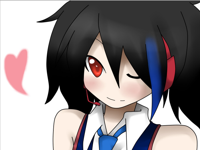1girlblack hairblue necktiefemale focusheadsetheartnecktieone eye closedred eyesshort hairsolowink