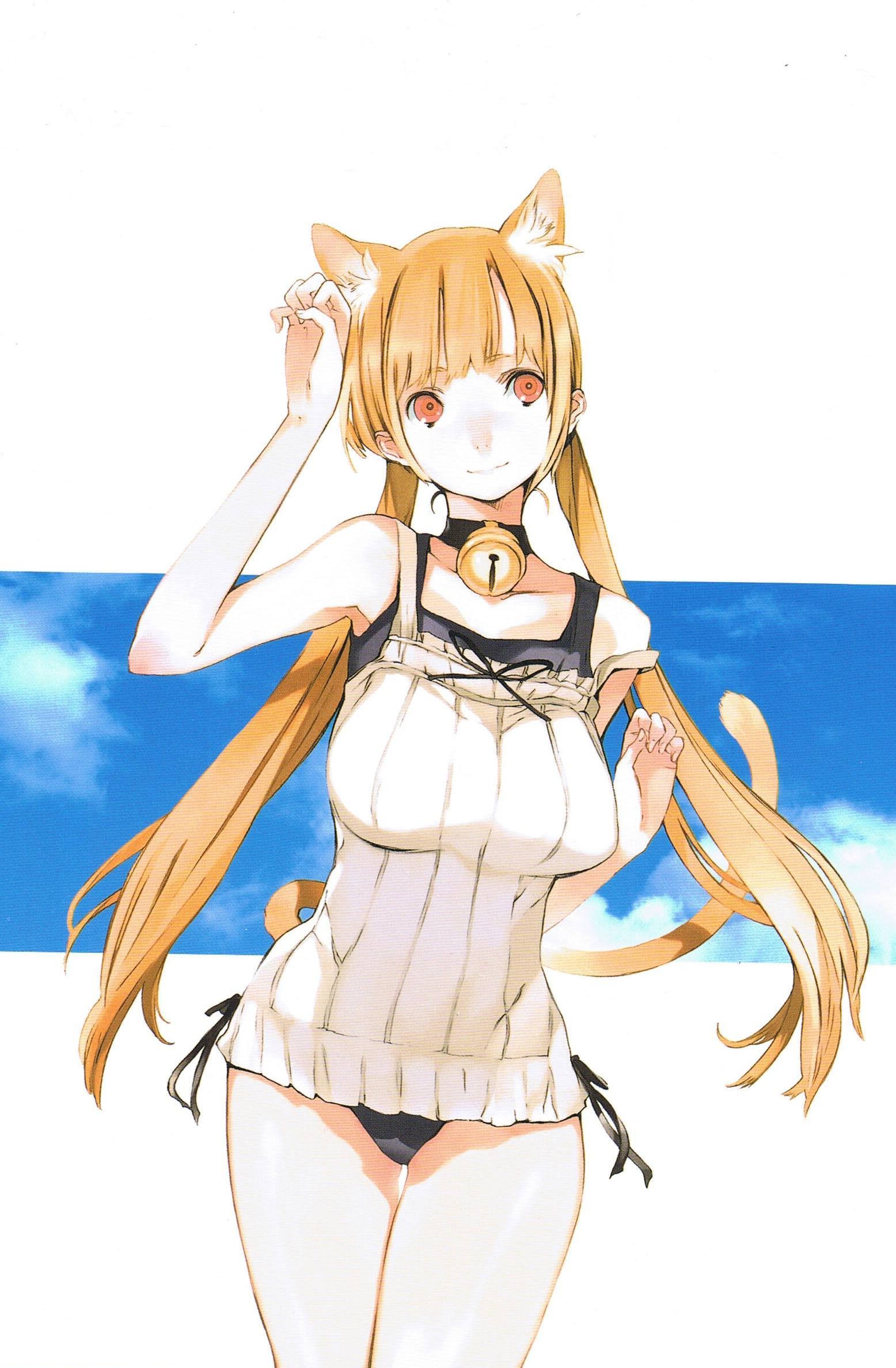 1girlanimal earsbare shouldersbellbreastscollarfemale focuslarge breastsneck bellone-piece swimsuitorange hairpaw posered eyessoloswimsuitswimsuit under clothestailtwintails