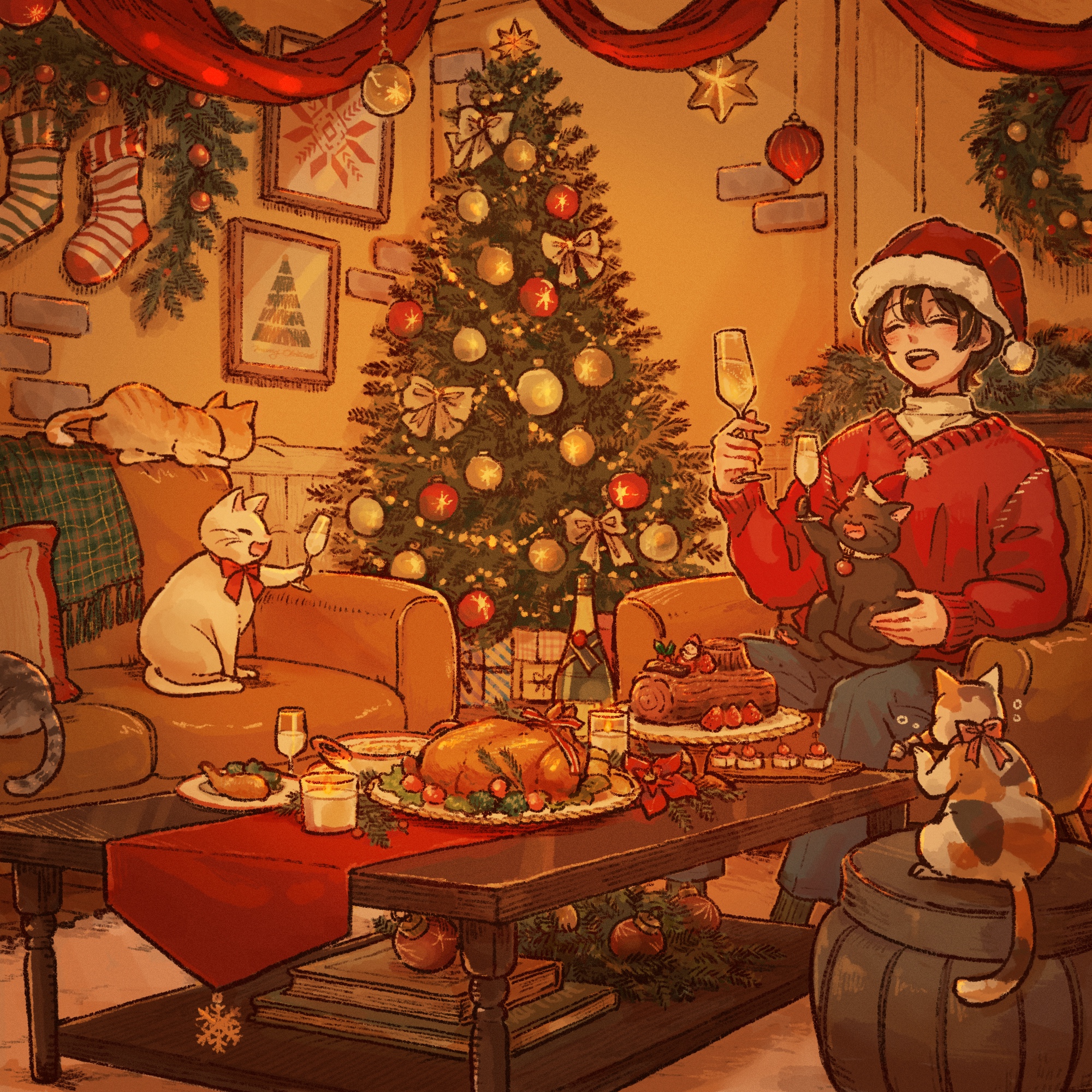 shinshin, mint blancmanche, broccoli (company), galaxy angel, galaxy angel rune, 00s, 1girl, autumn, autumn leaves, black thighhighs, blue hair, boots, campfire, female focus, food, leaf, looking back, mittens, plaid clothes, plaid skirt, roasted sweet potato, scarf, short hair, skirt, solo, squatting, sweet potato, thighhighs, yellow eyes, zettai ryouiki