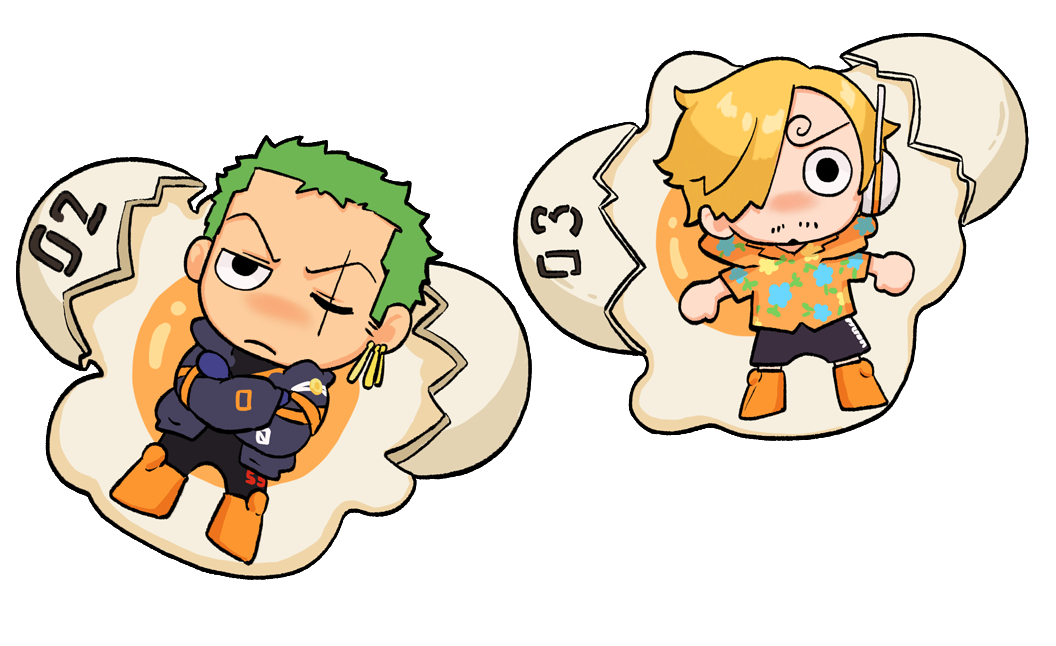 2boysblack shortsblonde hairbootschibichibi onlycracked eggcrossed armscurly eyebrowsegg yolkfacial hairfrowngoateegreen hairhair over one eyeheadsetlyingmale focusmultiple boysmustache stubbleno noseon backone eye closedorange bootsorange shirtscarscar across eyescar on faceshirtshort hairshortssimple backgroundstubblewhite background