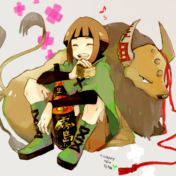 marionette online, satomura kyou, onozuka komachi, touhou, 1girl, blue dress, dress, female focus, milestone celebration, okobo, platform sandals, red eyes, red hair, sandals, scythe, short hair, short twintails, solo, tabi, twintails, two side up, white background