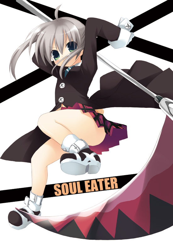 00s1girlahogealternate hair colorarms upbreastscollared shirtcopyright namefemale focusfrom belowfull bodyglovesgreen eyeshair between eyesholdingholding weaponlong hairlong sleeveslooking at viewernecktieplaid clothesplaid skirtschool uniformscytheshirtshoesskirtsmall breastssockssolotwintailsupskirtweaponwhite gloveswhite socks