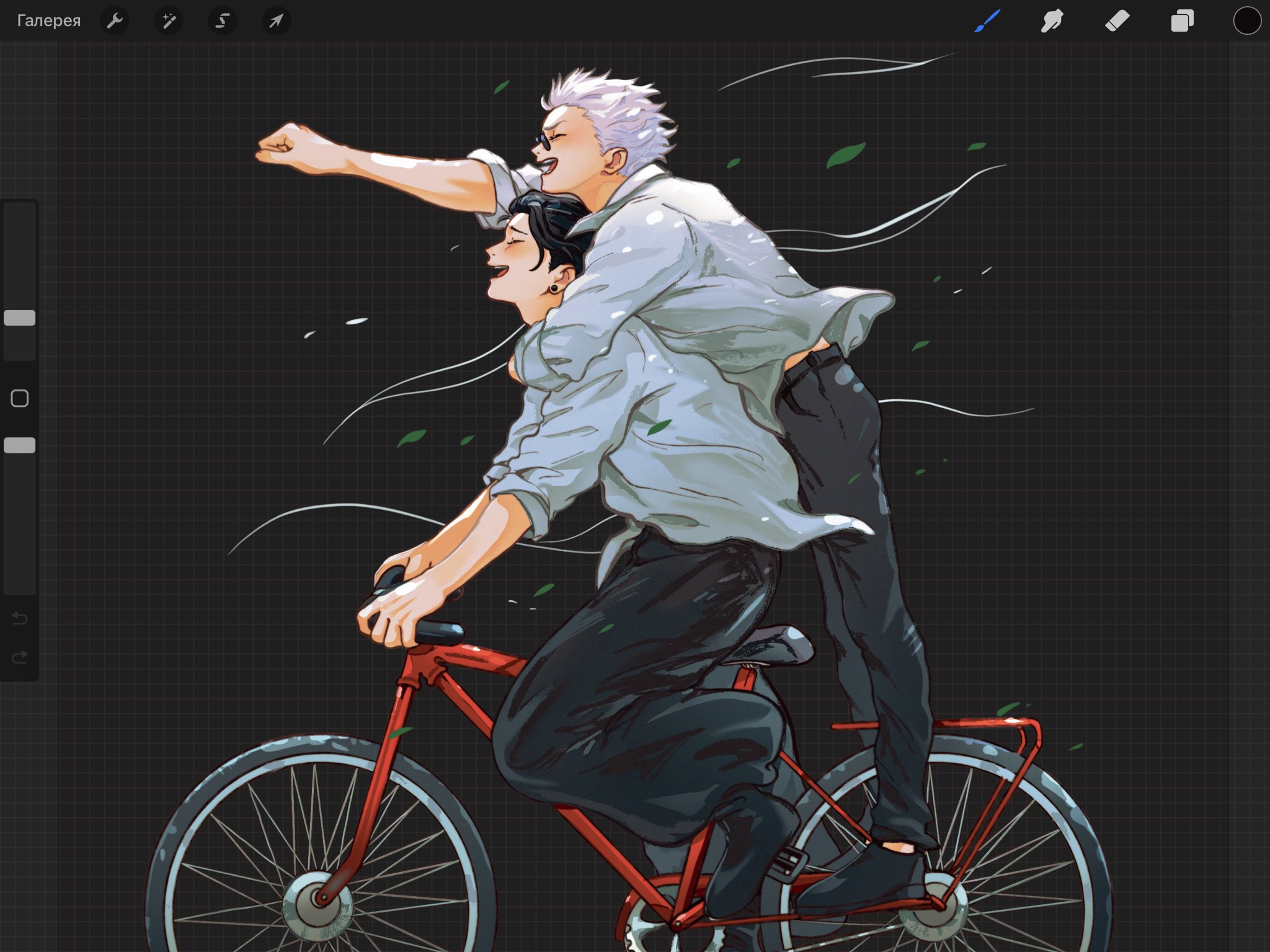 arm upart program in framebicycleblack hairblushclosed eyesfriendshugopen mouthridingriding bicycleshirtshort hairsmilesunglasseswhite hairwhite shirtwindyaoi
