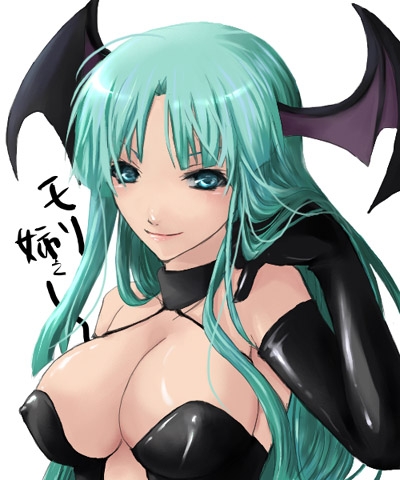 arnest, koakuma, touhou, commentary request, highres, 1girl, :d, black skirt, black vest, black wings, breasts, bright pupils, clothes lift, collared shirt, cowboy shot, dot nose, dress shirt, groin, hair between eyes, head tilt, juliet sleeves, large breasts, lifting own clothes, long hair, long sleeves, looking at viewer, low wings, necktie, no panties, open mouth, out-of-frame censoring, puffy sleeves, red eyes, red hair, red necktie, seductive smile, shirt, sidelocks, simple background, skirt, skirt lift, smile, solo, taut clothes, taut vest, very long hair, vest, white background, white pupils, white shirt, wings