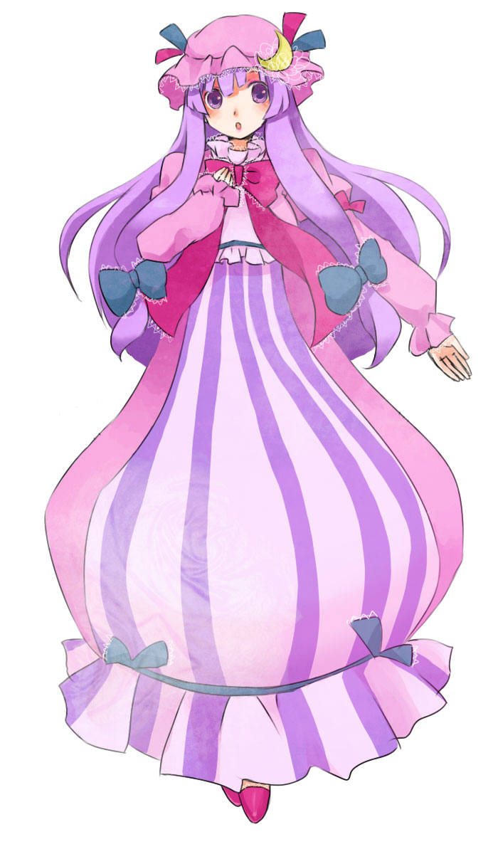 1girlcrescentcrescent hat ornamentfemale focusfull bodyhathat ornamentlong hairpurple eyespurple hairsimple backgroundsolo