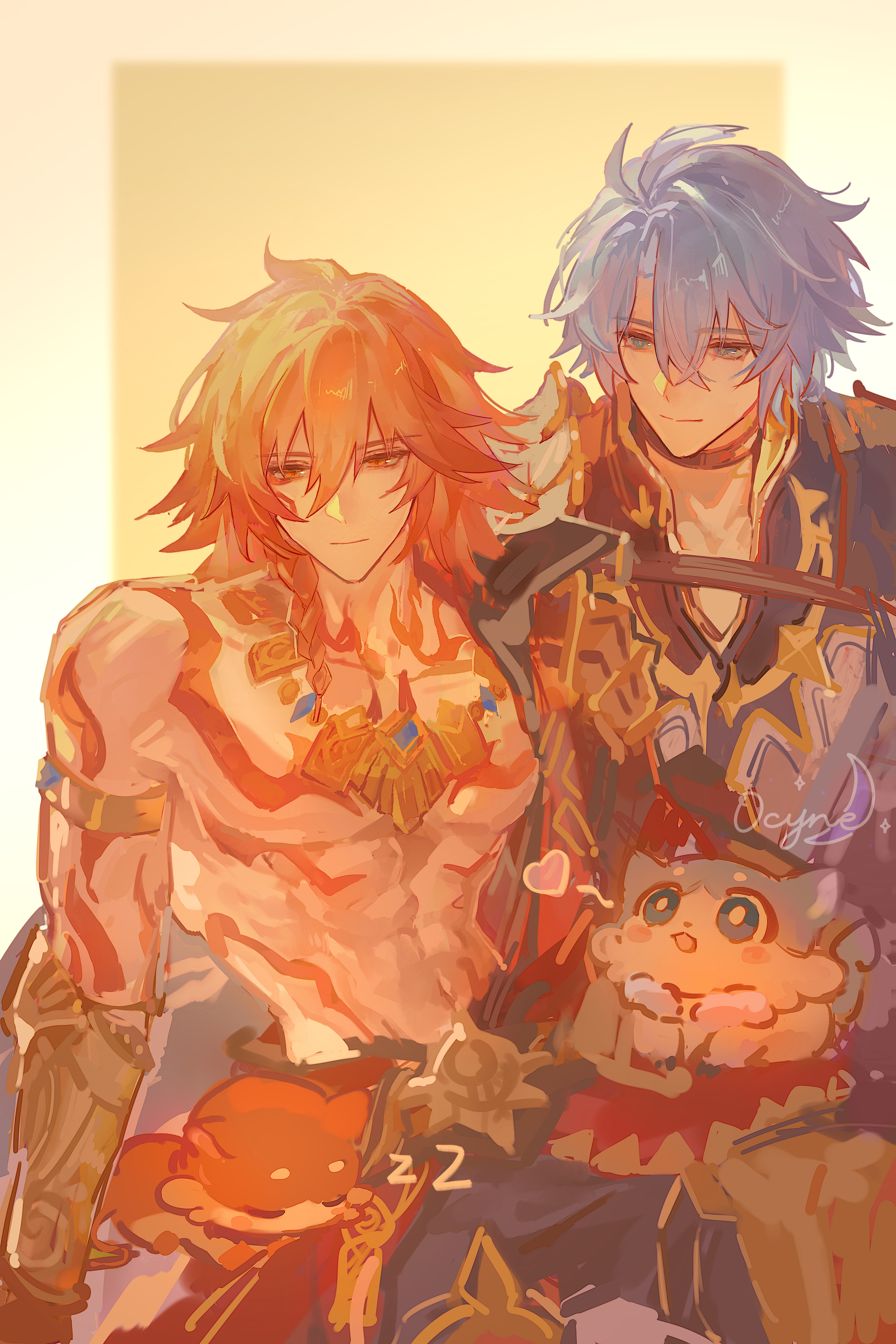 2boysabsantenna hairarm tattooarmletarmorblack chokerblack coatblack shirtblonde hairblue eyesbraidchest tattoochimera (honkai: star rail)chokerclawed gauntletscoatearringsfacial tattoogold earringsgold necklacegradient hairjewelrymale focusmedium hairmulticolored hairmultiple boysmuscularmuscular maleneck tattoonecklaceopen clothesopen coatparted bangspauldronsred hairred tattooshirtshort hairshoulder armorside braidsingle pauldronsun symbolsun tattootantattoowhite coatwhite hairyellow eyes