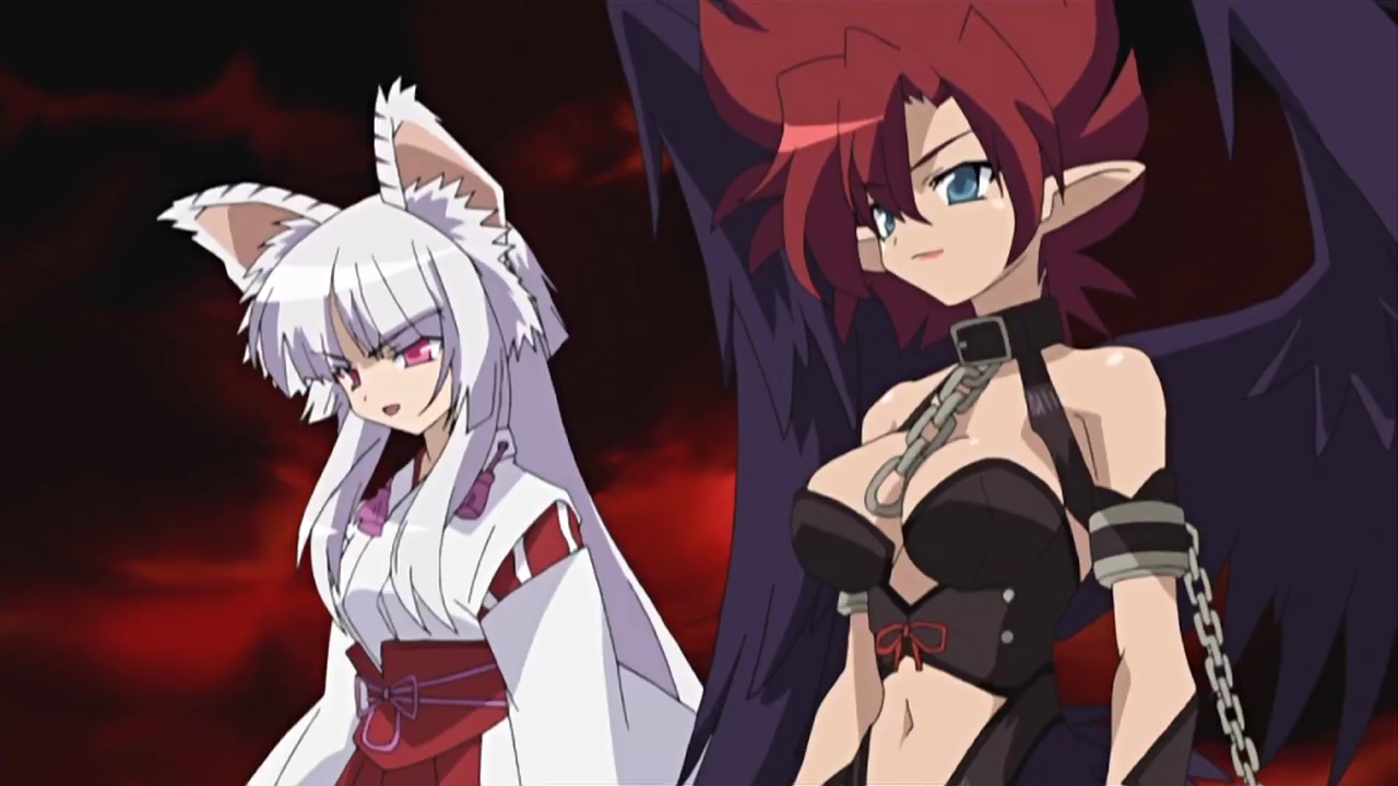00s2girlsanimal ear fluffanimal earsblack skyblack wingsbreastschaincleavageclothing cutoutdemon girlhair between eyeshakamahakama skirthalterneckhip ventjapanese clothesleotardlong hairmikomultiple girlsoutdoorsparted bangspointy earsrevealing clothesskirtskyspiked hairv-shaped eyebrowsvery long hairwings