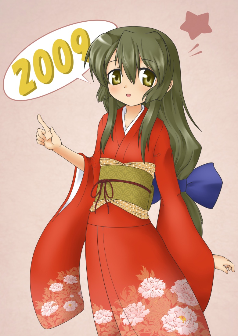 00s1girl2009brown eyesbrown hairjapanese clotheskimonolong hairlow-tied long hairnew yearstar (symbol)