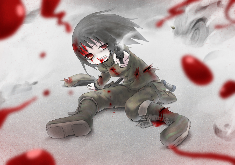 ni piao xiancai, hakurei reimu, inaba tewi, reisen udongein inaba, yakumo yukari, touhou, duplicate, 4girls, ah-64, ah-64 apache, aircraft, alternate costume, animal ears, assault rifle, attack helicopter, blonde hair, ears through headwear, female focus, firing, gun, gunship, helicopter, helicopter gunship, helmet, m16, m16a4, military, military vehicle, missile, multiple girls, parody, rabbit ears, rifle, soldier, war, weapon, what
