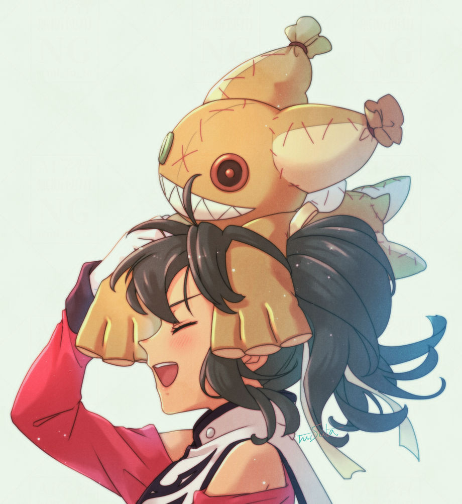 barasui, matsuoka miu, ichigo mashimaro, derivative work, highres, vector trace, :p, child, finger puppet, fingerpuppets, puppet, solo, tongue, tongue out, twintails, watermark