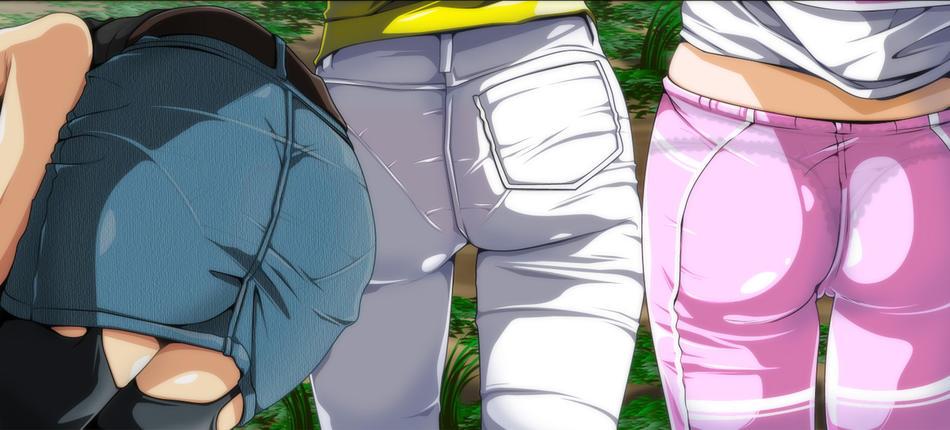 3girlsassmultiple girlspantiespantylinespencil skirtsee-through clothesskirtthighhighsthongunderwear