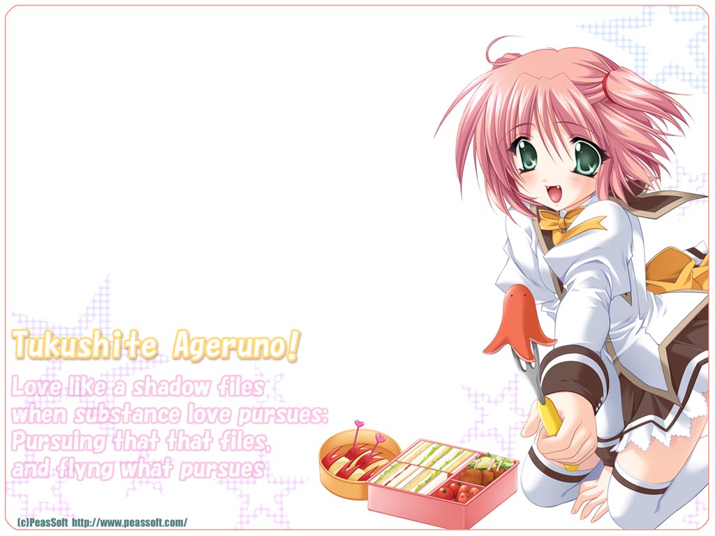 bentoenglish textengrish textfangfangsfoodfood artforkgreen eyeskneelingpink hairranguagerounded cornersschool uniformshort hairsolotako-san wienerthighhighstwintails