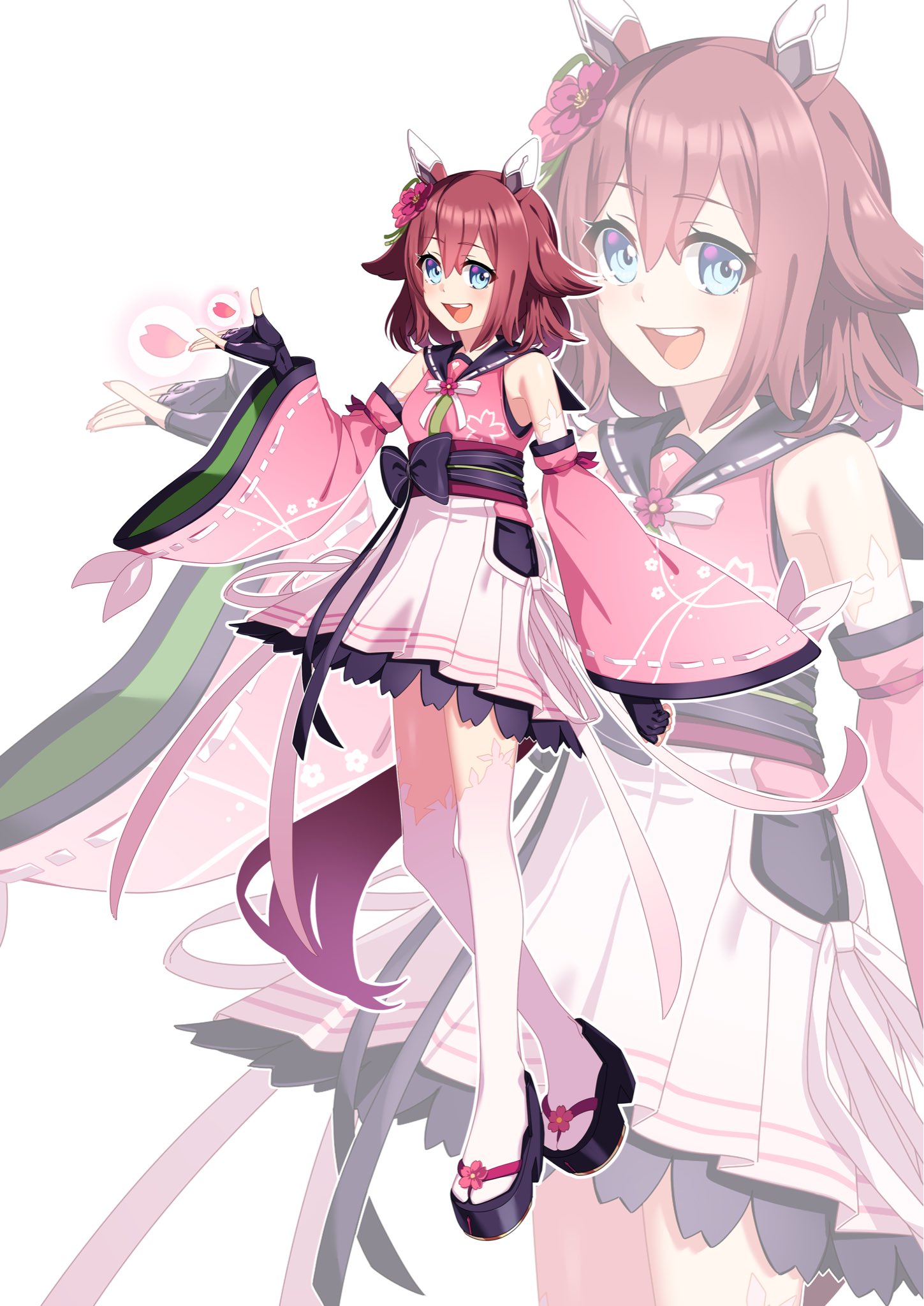 namori, toshinou kyouko, yuruyuri, hashtag-only commentary, highres, translation request, 1girl, afterimage, arms up, black shorts, blonde hair, bow, brown bow, clenched hands, feet out of frame, hair bow, long hair, motion lines, shirt, short sleeves, shorts, simple background, solo, standing, white background, yellow shirt