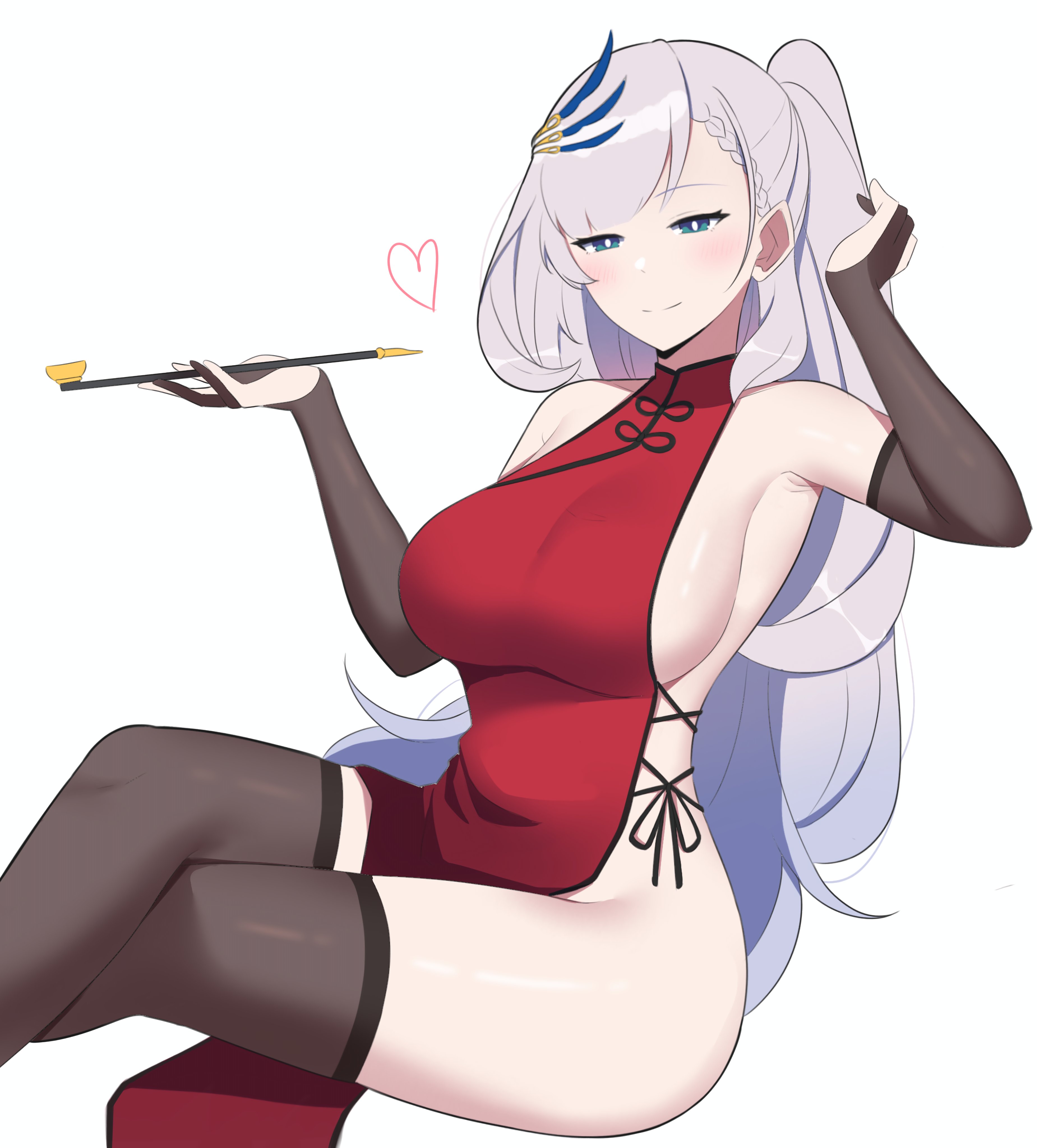 baihuahua5441, hong lu (project moon), limbus company, project moon, absurdres, highres, 1boy, animal skeleton, bandage over one eye, black bodysuit, black hanfu, blood, bodysuit, bodysuit under clothes, chinese clothes, chinese hairpin, closed eyes, closed mouth, different reflection, expressionless, family hierarch candidate (identity) (project moon), hair down, hanfu, high ponytail, long hair, male focus, nostrils, parted lips, partially submerged, pectorals, ponytail, pool of blood, purple hair, reflection, reflective water, smoke, solo, tight clothes, upper body, very long hair, weapon, weapon on back, white hanfu