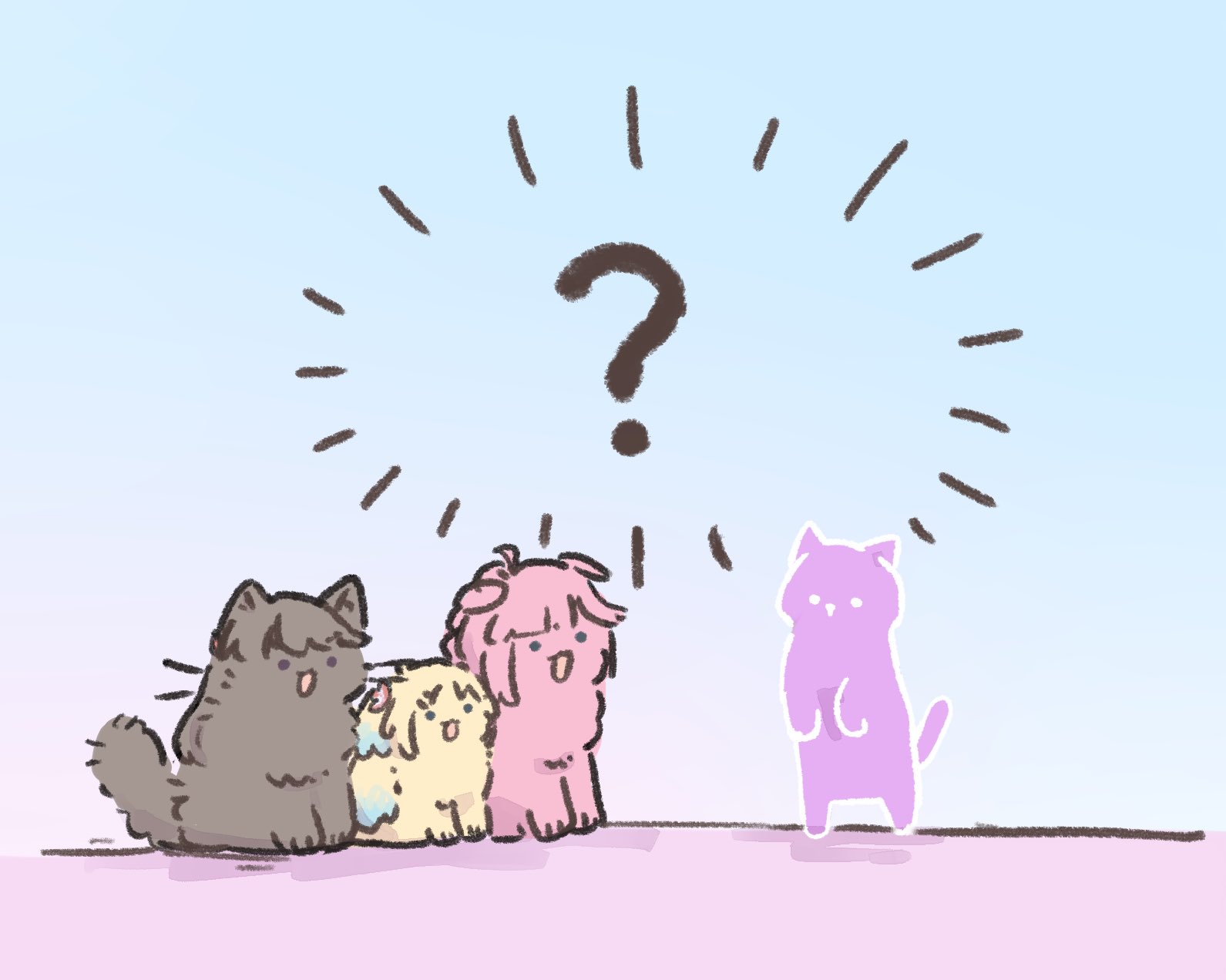1boyanimal focusanimal with hairanimalizationblue backgroundblue eyescatdoggradient backgroundgrey dogmira-cra park!multiple dogsno humansnyao signyalnyao signyal catopen mouthpink dogpurple backgroundpurple catpurple eyesrearingsittingtwo-tone backgroundvirtual youtuberyellow dog
