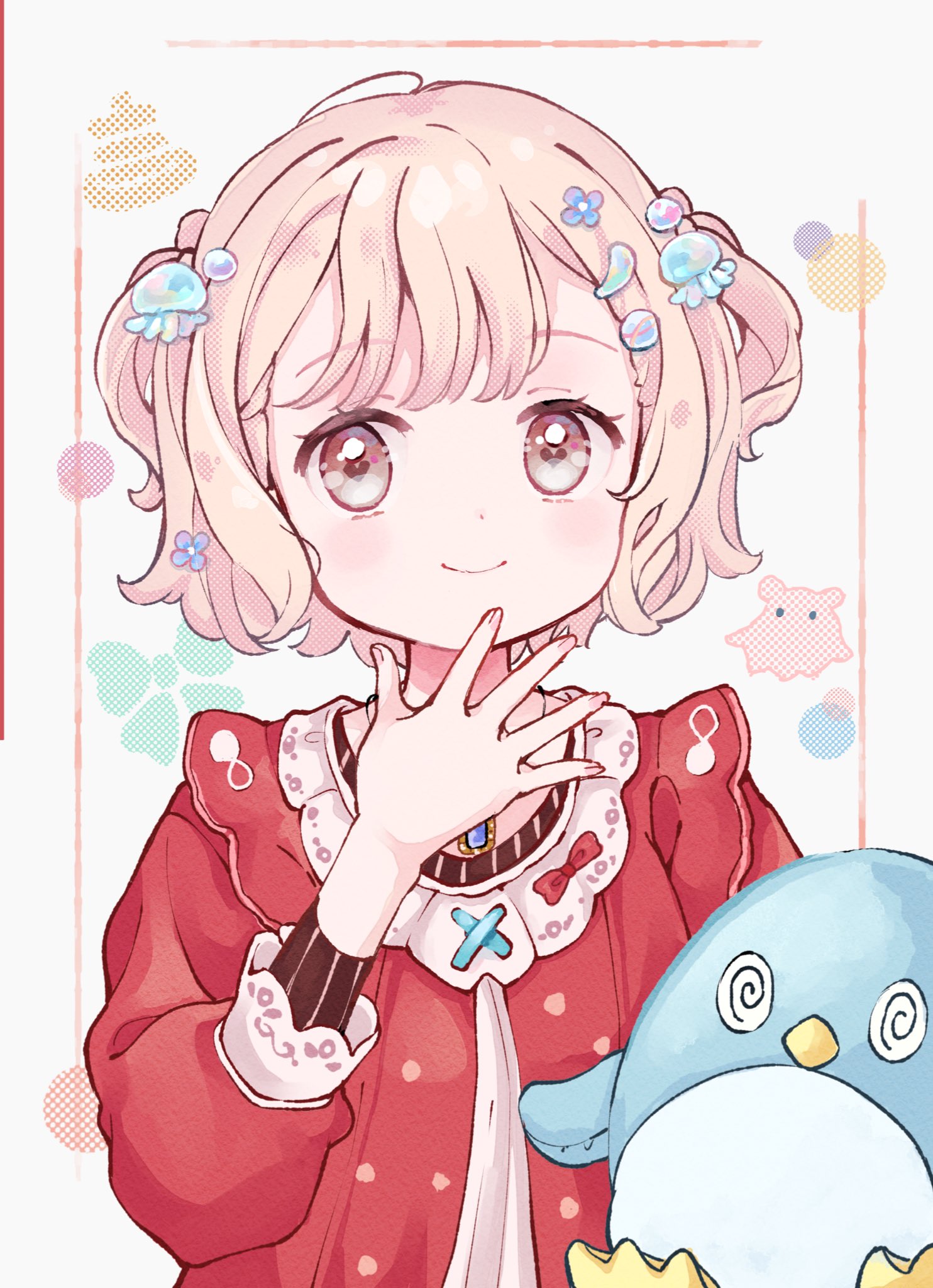 daiichi ruby (umamusume), daitaku helios (umamusume), k.s.miracle (umamusume), yamanin zephyr (umamusume), umamusume, absurdres, bad link, commentary request, highres, official art, 4girls, animal ears, blurry, blurry background, blush, breasts, casual, dog, drill hair, fang, hair between eyes, hair ornament, horse ears, horse girl, leaf, long hair, looking at viewer, medium breasts, multiple girls, open mouth, ribbon, sitting, tree, yellow eyes
