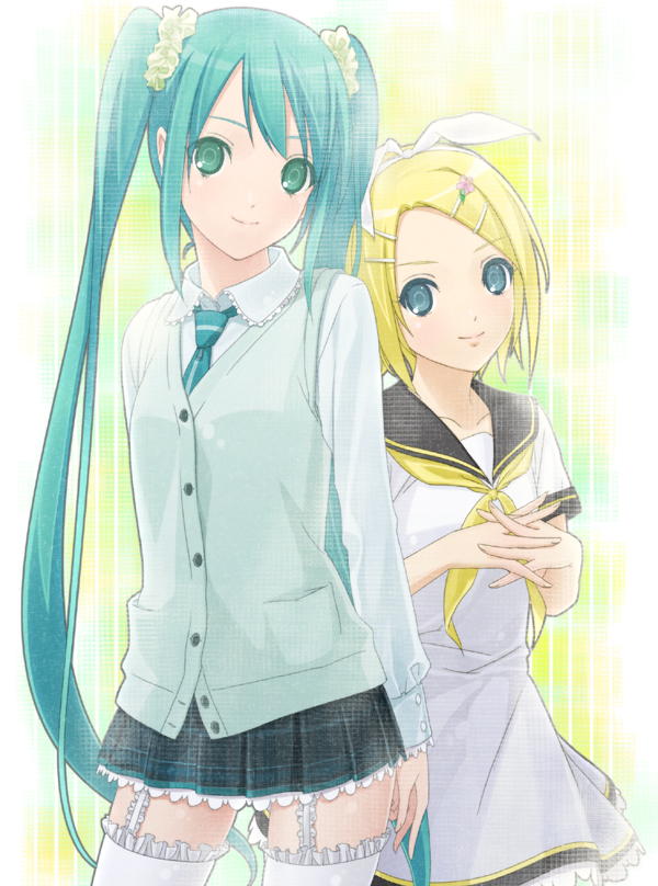 2girlsfrillsgarter strapslong hairmultiple girlsschool uniformskirtthighhighstwintailsvery long hairzettai ryouiki