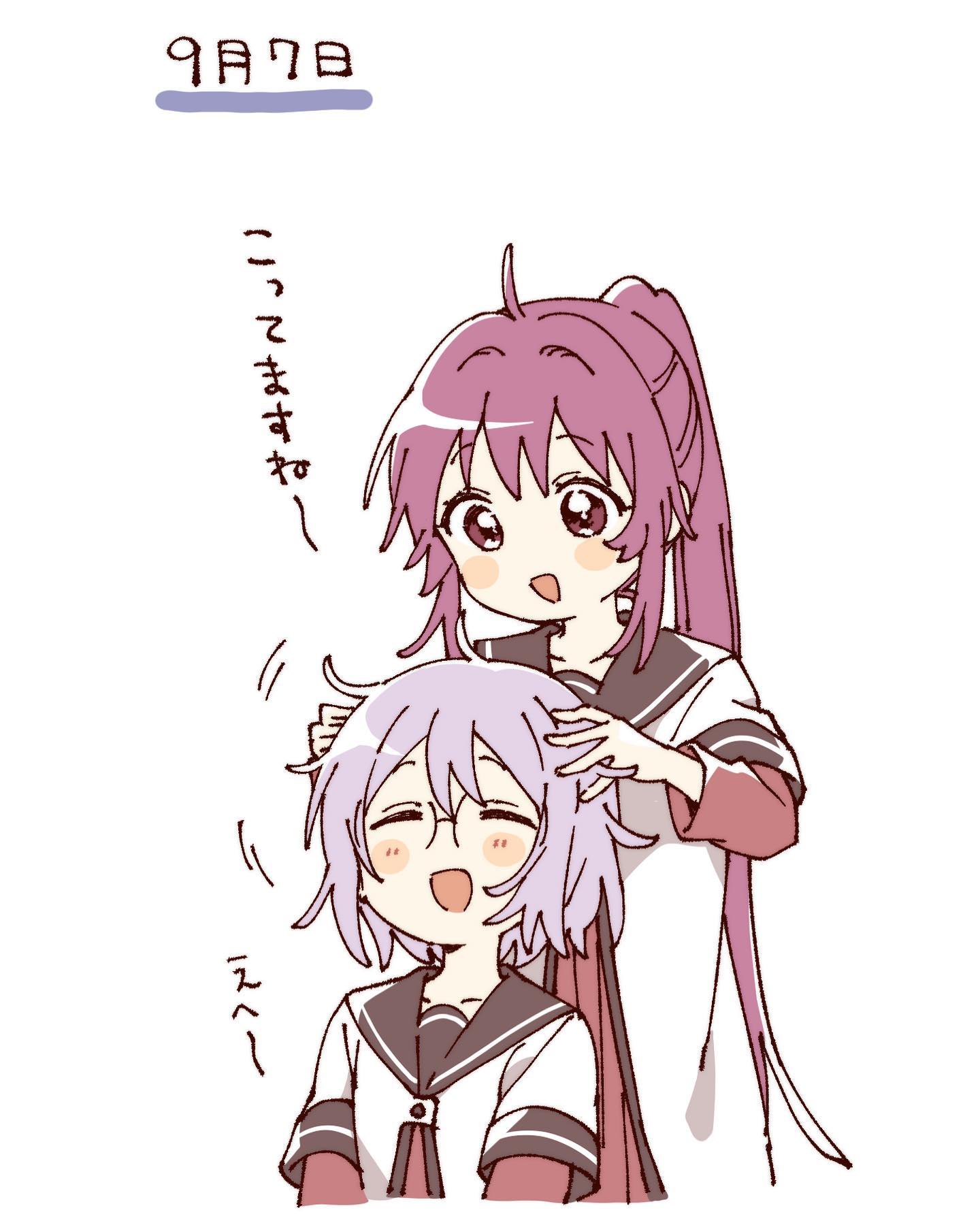 konsai 2, asura (onmyoji), taishakuten (onmyoji), onmyoji, absurdres, commentary, highres, symbol-only commentary, 2boys, black choker, black hair, blonde hair, choker, earrings, green eyes, hug, jewelry, long hair, looking at viewer, male focus, multiple boys, red hair, shirt, simple background, teeth, upper body, white background, white shirt, yaoi
