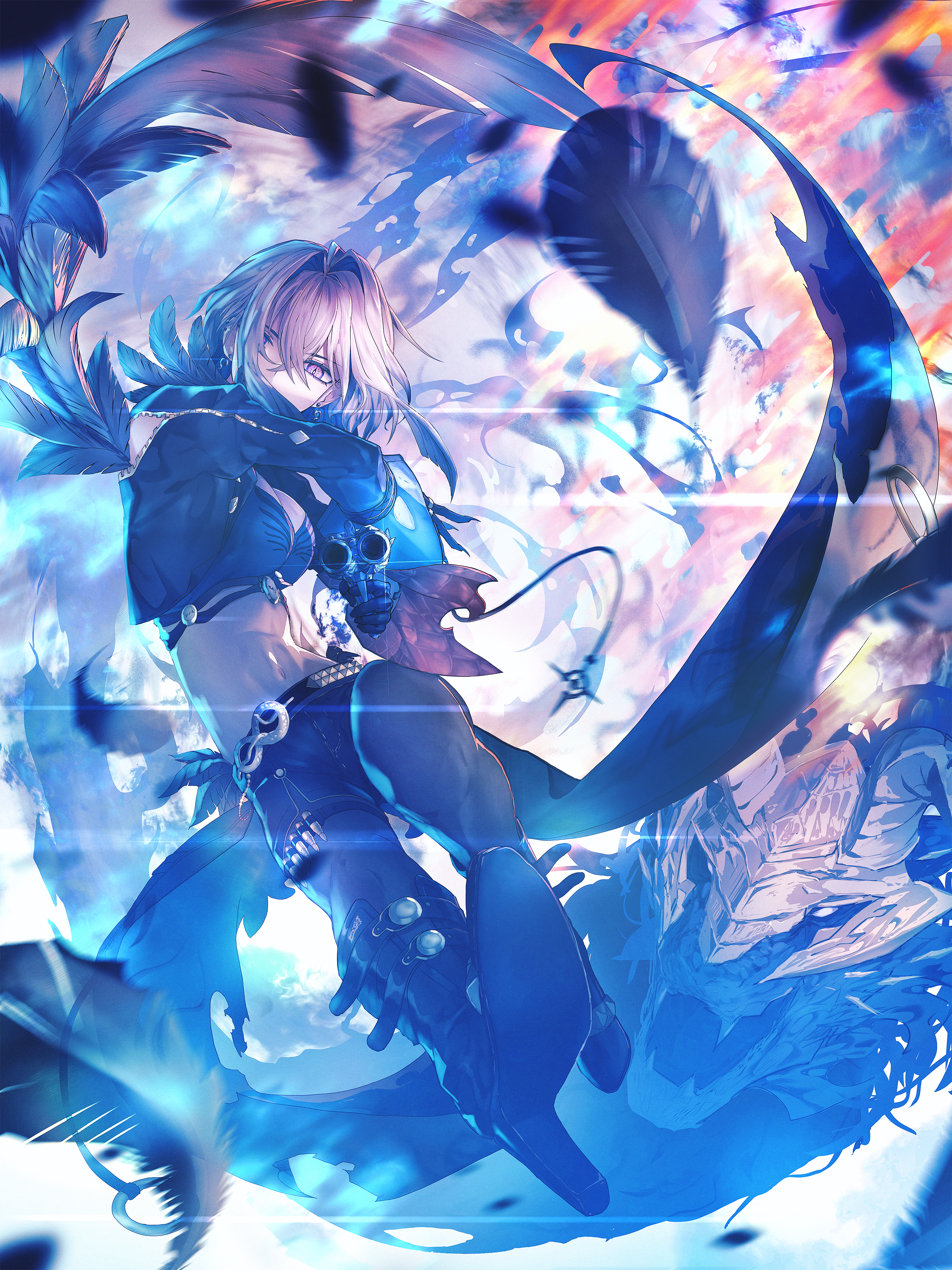 hiroe rei, kukulkan (fate), fate/grand order, fate (series), commentary request, game cg, hairstyle request, official art, third-party source, 1girl, aerial fireworks, ahoge, closed mouth, colored eyelashes, cowboy shot, earrings, fireworks, green eyes, hair ribbon, hand fan, holding, holding fan, japanese clothes, jewelry, kimono, lips, long sleeves, looking at viewer, looking back, night, night sky, obi, outdoors, paper fan, photo background, purple sash, ribbon, sash, short hair, sidelocks, sky, smile, solo, standing, uchiwa, white hair, white kimono, wide sleeves