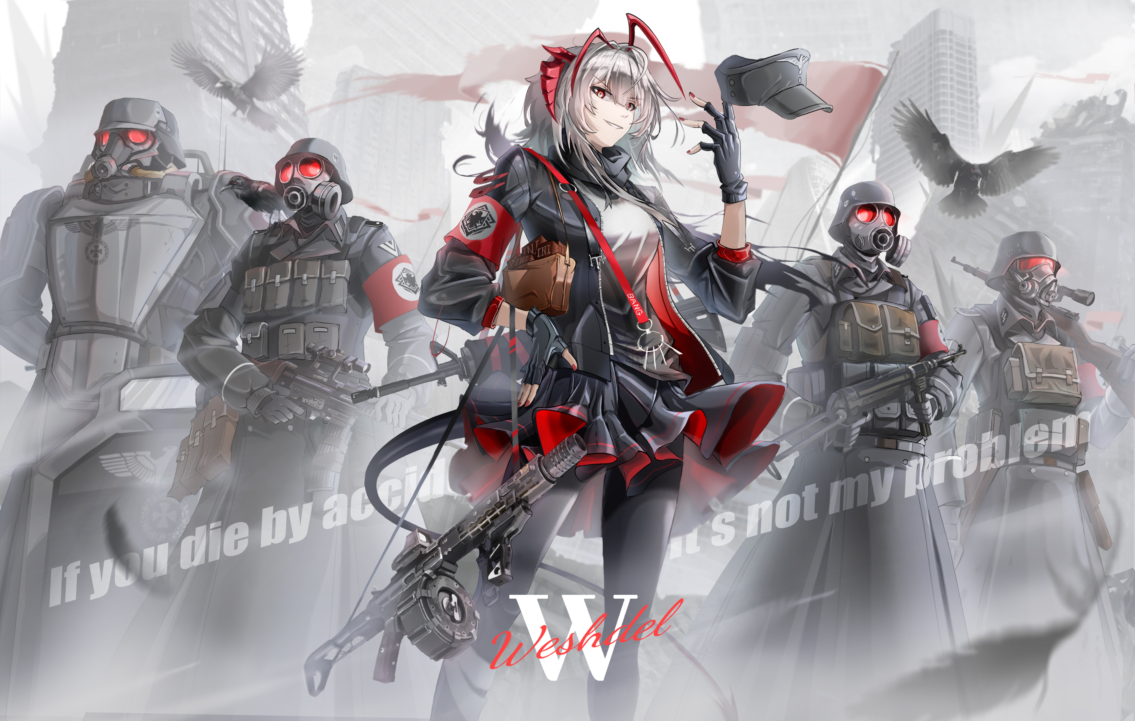 1girl4othersantenna hairarmbandarmorassault riflebirdblack coatblack glovesblack hatblack jacketblack pantyhoseblack scarfblack skirtbolt actioncoatcrossdemon hornsdemon taileagleenglish textfingerless glovesfull armorgas maskglovesgrey hairgunhand on own hiphand uphatholdingholding gunholding unworn clothesholding unworn hatholding weaponhornsiron crossjacketlong sleeveslooking at viewerm4 carbinemaskmauser 98mp40multiple othersnaziopen clothesopen jacketorange eyespantyhoseparted lipsred armbandred nailsreichsadlerrifleruinsscarfshirtshort hairskirtsmilestg44submachine guntailunworn hatunworn headwearweaponwhite shirt