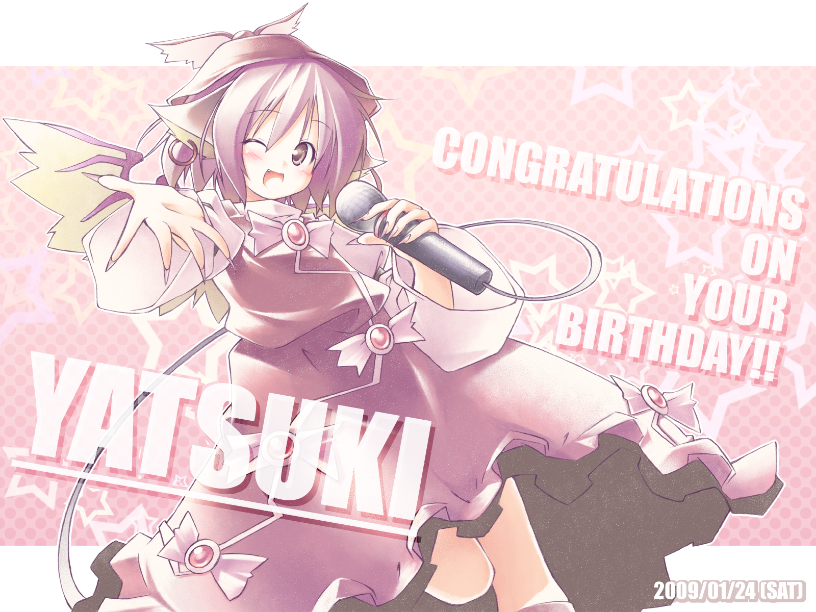 1girlanimal earsdatedearringsfangfemale focusfingernailshatjewelrylong fingernailsmicrophonenail (hardware)one eye closedopen clothesopen shirtpink hairshirtsolowingswink