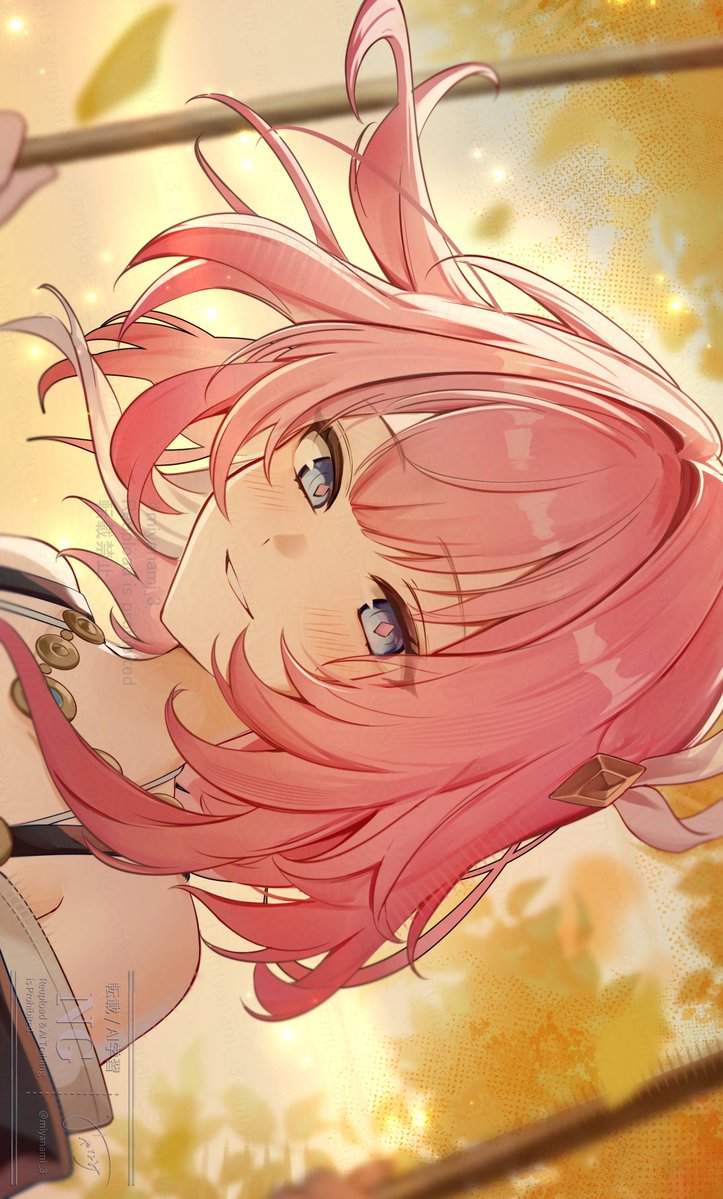 1girlblue eyescyrene (aedes elysiae) (honkai: star rail)diamond (shape)diamond-shaped pupilsgold necklacegrinhair intakeshair ornamentjewelrylight blushlooking at viewernecklacepink hairpink pupilsportraitshort hairsidelockssidewayssmilesolosymbol-shaped pupilswatermark