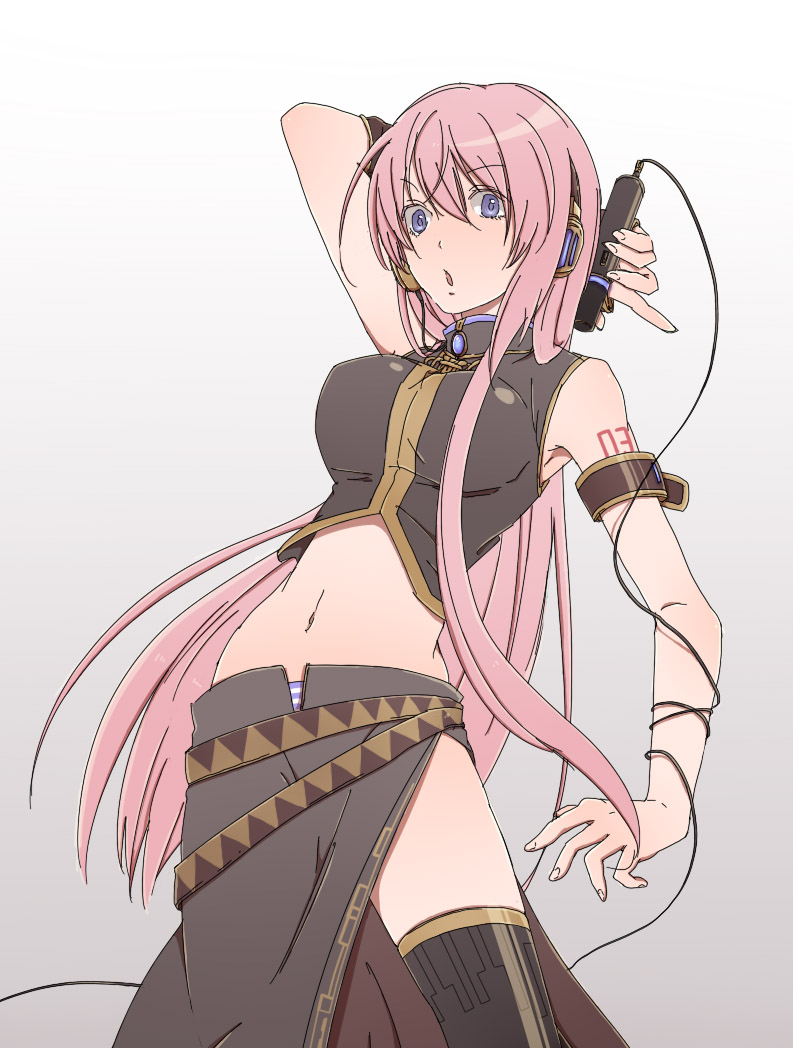 blue eyesbreastsdetached sleevesheadsetlarge breastslong hairmicrophonemidriffpantiespink hairskirtsolostriped clothesstriped pantiesthighhighsunderwearvery long hair