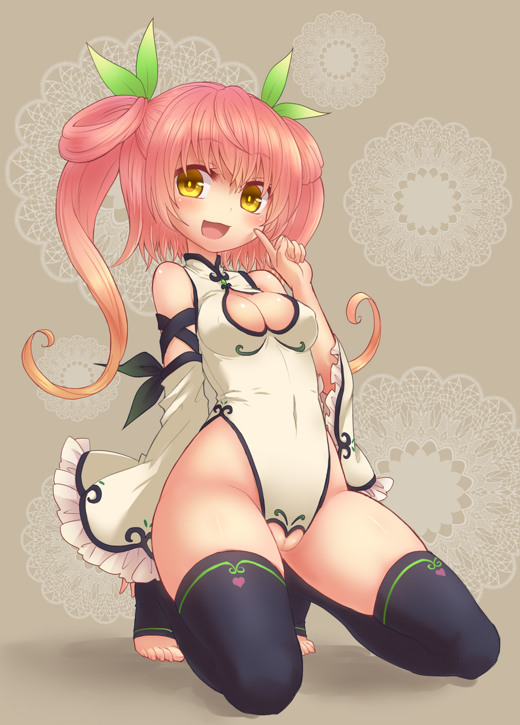 :3:dbarefootblack legwearbreastscleavagecleavage cutoutcrotchless clothesdetached sleevesdoilyfeetfinger to faceFlag for Deletiongradient hairindex finger raisedkneelingleotardlong hairlooking at viewermulticolored hairno shoesopen mouthpink hairpussyraised fingersmilesolosquattingthighhighstied hairtoeless legweartoestwintailswide sleevesyellow eyes