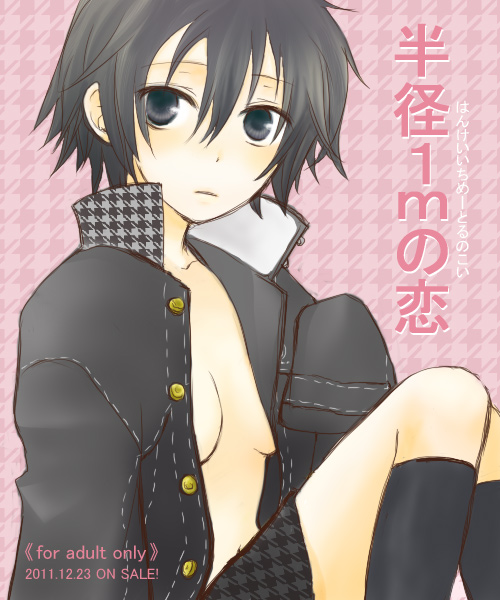 1girlandrogynousblack eyesblack hairfemale focushoundstoothopen clothesopen shirtreverse trapschool uniformshirtshort hairsolo