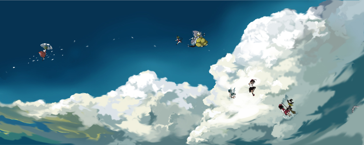 6+girlsanimal earsanimal hatblonde hairbroombroom ridingcameracat earscat girlcat tailclouddayfemale focusflyingfox tailgap (touhou)getahatmob capmultiple girlsoutdoorsparasolpetalsplaid clothesplaid skirtsceneryskirtskytailtengu-getatokin hatumbrellawingswitchwitch hat