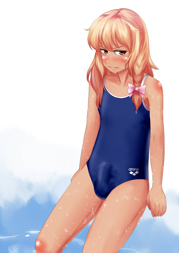 1boyarms at sidesbare legsbare shouldersblonde hairblushbraidbraided hairbulgecollarbonecompetition swimsuitcrossdressingembarrassederection under clothesfemboyFlag for Deletionflat gazefront viewgirlyhair ribbonhairbowhumanlight skinlong hairlooking at viewermalemale onlynot furryone-piece swimsuitpenis under clothespigtailsribbonschool swimsuitsolosolo focusspeedoswimsuittamako mizutrapwavy mouthwetwhite skinyellow eyess
