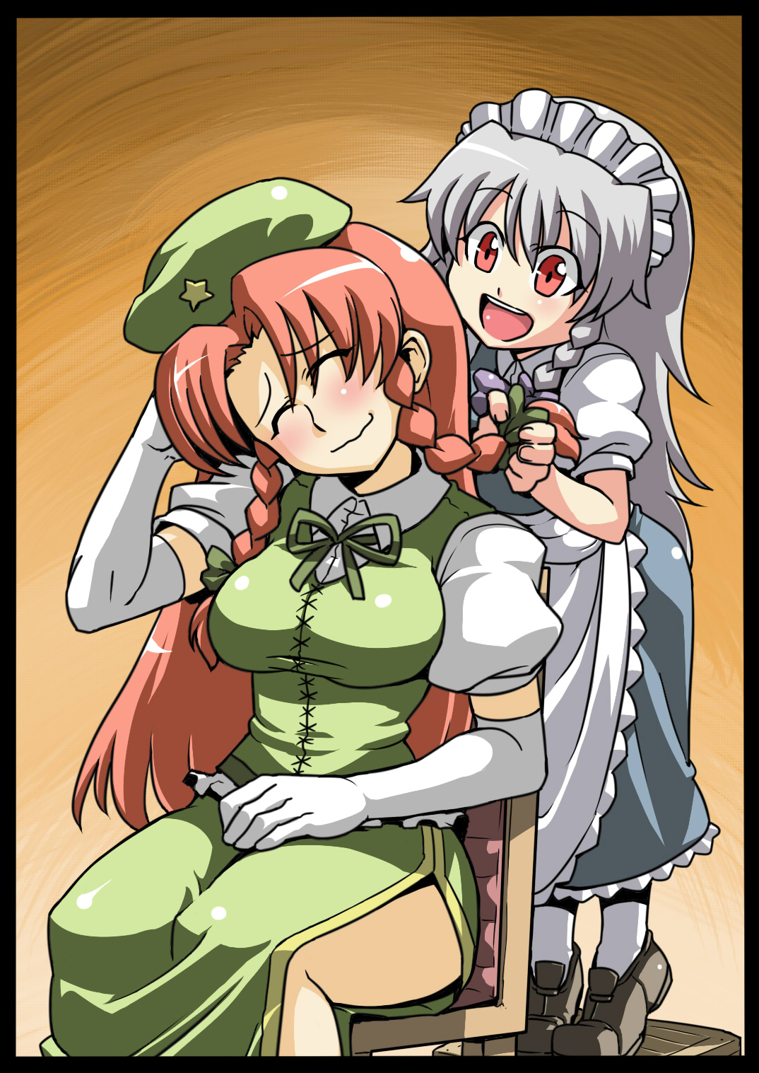 takashima, yakumo yukari, touhou, duplicate, 1girl, blonde hair, bow, cherry blossoms, closed umbrella, dress, female focus, gloves, hair bow, hat, long hair, purple eyes, ribbon, smile, solo, umbrella, very long hair, white gloves