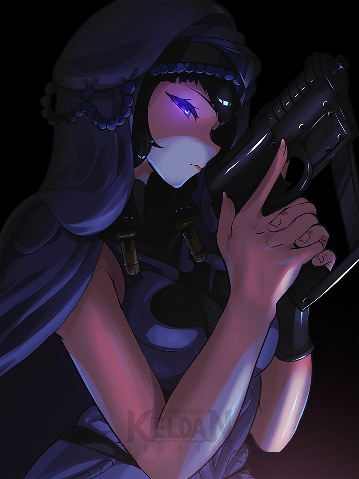 maorisu henkyo haku, reze (chainsaw man), chainsaw man, absurdres, highres, 1girl, black choker, black ribbon, blood, choker, collared shirt, explosion, explosion background, green eyes, hair between eyes, hair bun, looking at viewer, open mouth, purple hair, ribbon, shirt, sleeveless, sleeveless shirt, solo, teeth, upper teeth only, white shirt