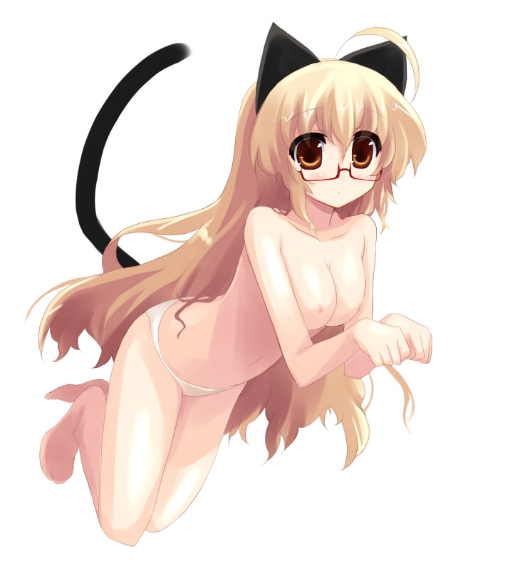 manabe jouji, 1girl, ^ ^, animal ears, blue hair, breasts, buruma, cat ears, cat tail, closed eyes, female focus, gym uniform, happy, large breasts, open mouth, smile, solo, sweater, tail, underwear