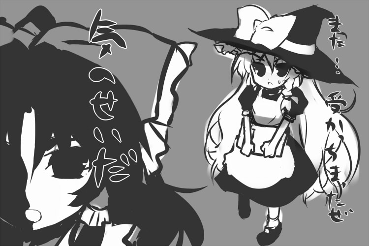 2girlsblushbobby socksfemale focusgreyscalehatlooking at viewermary janesmonochromemultiple girlspuffy short sleevespuffy sleevesshaded faceshoesshort sleevessidelockssocksstandingsweatdroptaremewitch hat