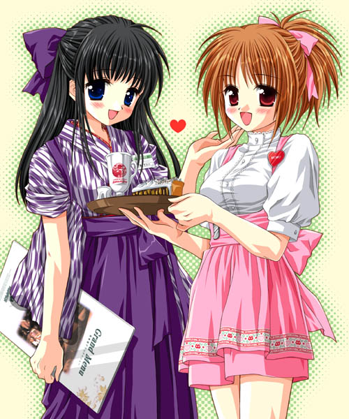 pop, lunch box (manga), tagme, 00s, 2girls, blue eyes, blue hair, blush, multiple girls, open mouth, solo