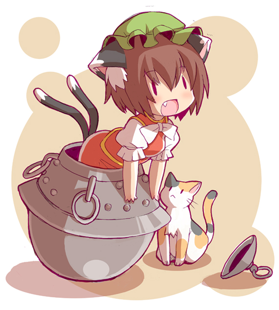 1boy1girlanimal ear fluffanimal earscatcat earscat tailchibifangfemale focusmultiple tailsopen mouthsolotailtwo tails