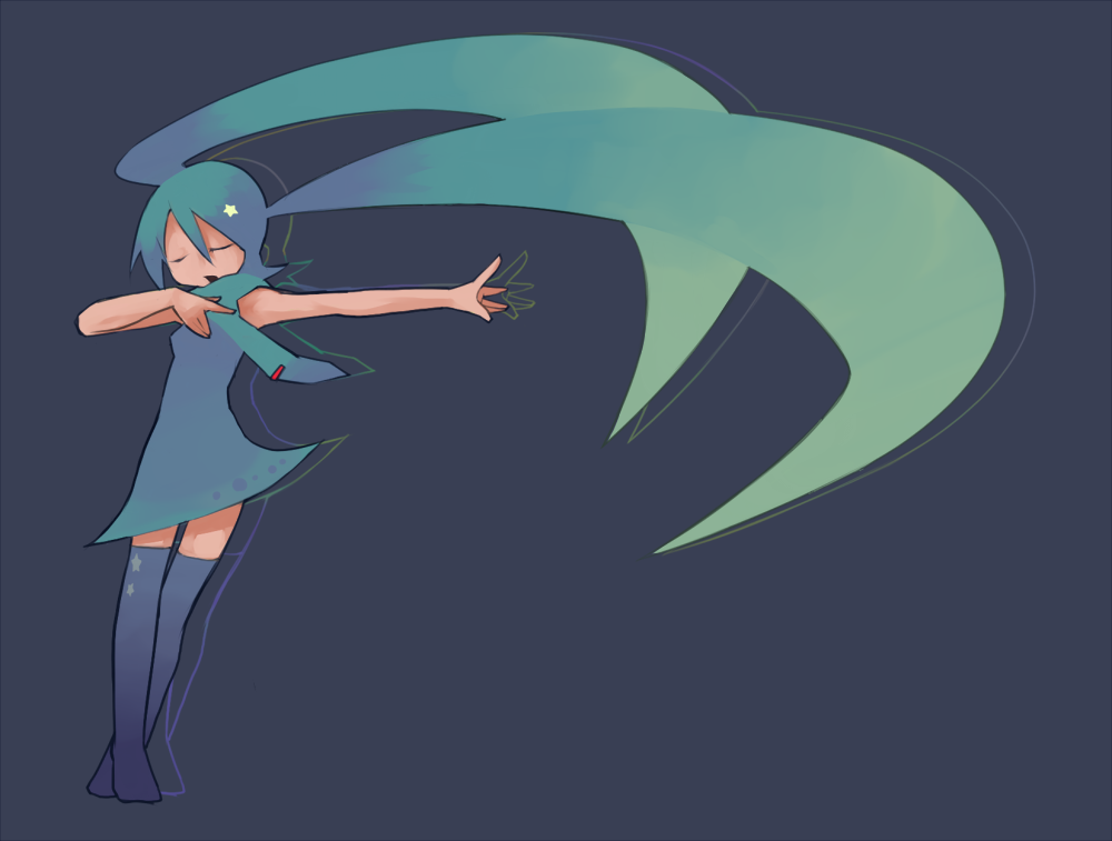 aqua hairbootsclosed eyesgradient hairlong hairmulticolored hairsolothigh bootsthighhighstwintailszettai ryouiki