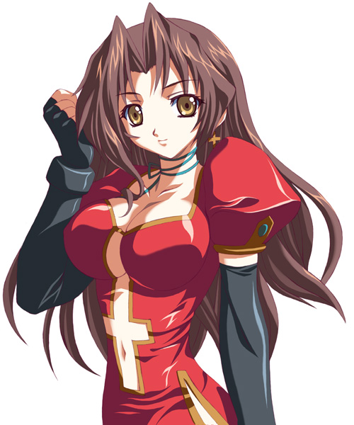 eclair (kiddy grade), kiddy grade, 00s, 1girl, brown eyes, brown hair, elbow gloves, female focus, fingerless gloves, gloves, long hair, navel, solo