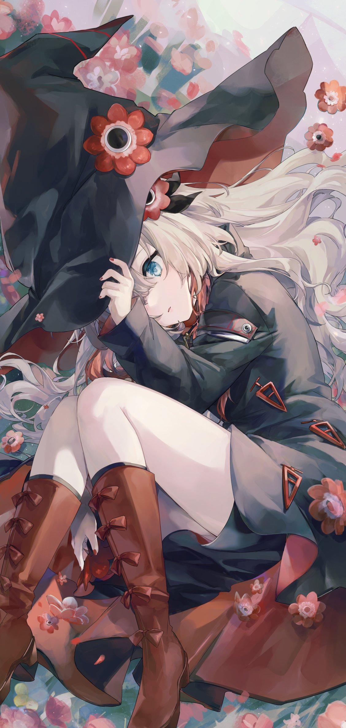 nakame77, hong lu (project moon), kurokumo clan (identity) (project moon), limbus company, project moon, highres, 1boy, black eyes, black hair, black jacket, blue eyes, cloud tattoo, collared shirt, heterochromia, high ponytail, irezumi, jacket, long hair, long sleeves, looking at viewer, male focus, ok sign, ponytail, scar, scar across eye, scar on face, shirt, simple background, solo, tattoo, upper body, white background, white shirt