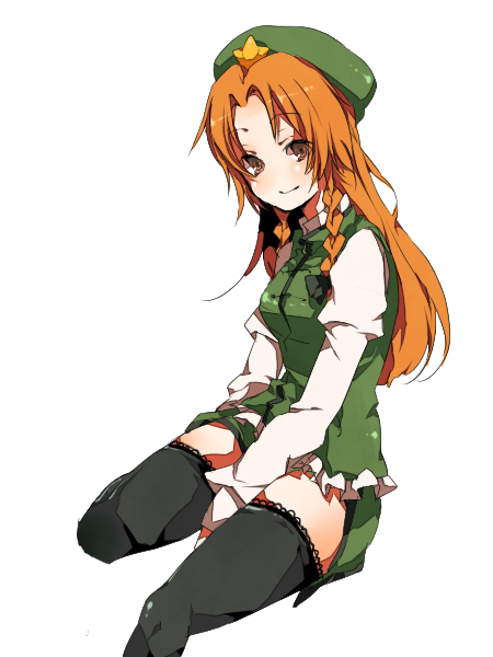 1girlbreastsfemale focushatsimple backgroundsittingskirtsolothighhighswhite backgroundzettai ryouiki