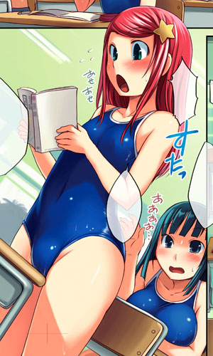 2girlsbare shouldersblack hairblank speech bubbleblue eyesblushbookbreastsclassroomcollarbonecomiccompetition school swimsuitcompetition swimsuitdeskdutch anglegreen eyeshair ornamentindoorslong hairmultiple girlsone-piece swimsuitopen mouthred hairschoolschool swimsuitsittingspeech bubblestandingsurprisedsweatdropswimsuitthighs
