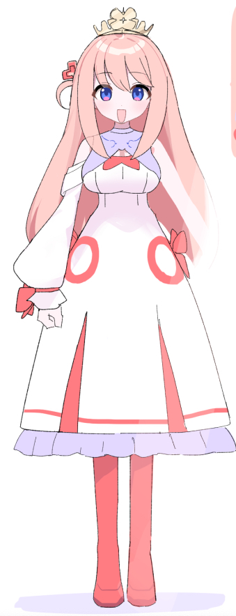 :d1girlarms at sidesblue eyesbowbreastsclothing cutoutcrowndressfrilled dressfrillsfull bodyhair between eyeshair ornamentlarge breastslong hairlong sleeveslooking at viewernananayaone side upopen mouthpink hairpuffy long sleevespuffy sleevespurple eyesred ribbonred shoesribbonshoesshoulder cutoutsidelockssimple backgroundsmilesolostandingstraight-onwhite backgroundwhite dress