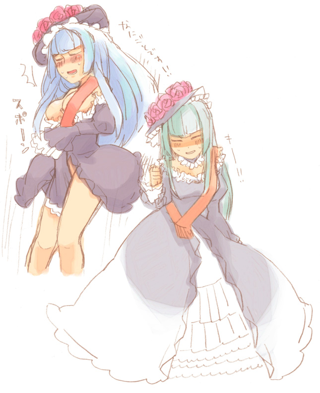 00s1girlangryblushbreastschokerclenched handclosed eyesdressfrillsgownhathime cutlarge breastslong hairsash