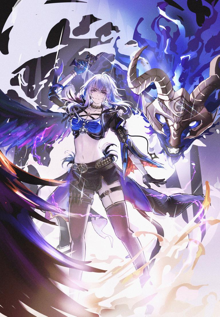1girlarm upblack glovesblack jacketblack pantyhoseblack shortsblack thighhighsblue brabrabreastsclosed mouthcollarbonecropped jacketelectricityfeathered wingsglovesgold chokergrey hairgunholdingholding gunholding weaponjacketlooking at viewermedium breastsmedium hairmolemole on necknavelpantyhosepurple eyesshortssingle leg pantyhosesingle thighhighsingle wingsolostomachtacet discord (wuthering waves)thigh strapthighhighsunderwearweaponwings
